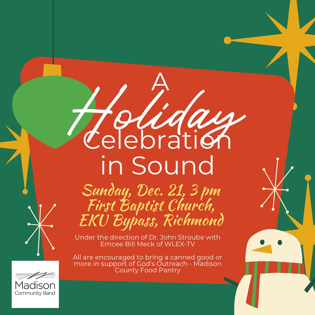 ​Welcome to the Madison Community Band! Based in Richmond, Kentucky, our all-volunteer band brings together passionate musicians from Central and Southeastern Kentucky. Since our establishment in July 2009, we've been dedicated to sharing the joy of music with our community, performing four times each concert season and twice during the summer. Join us for an unforgettable musical experience!